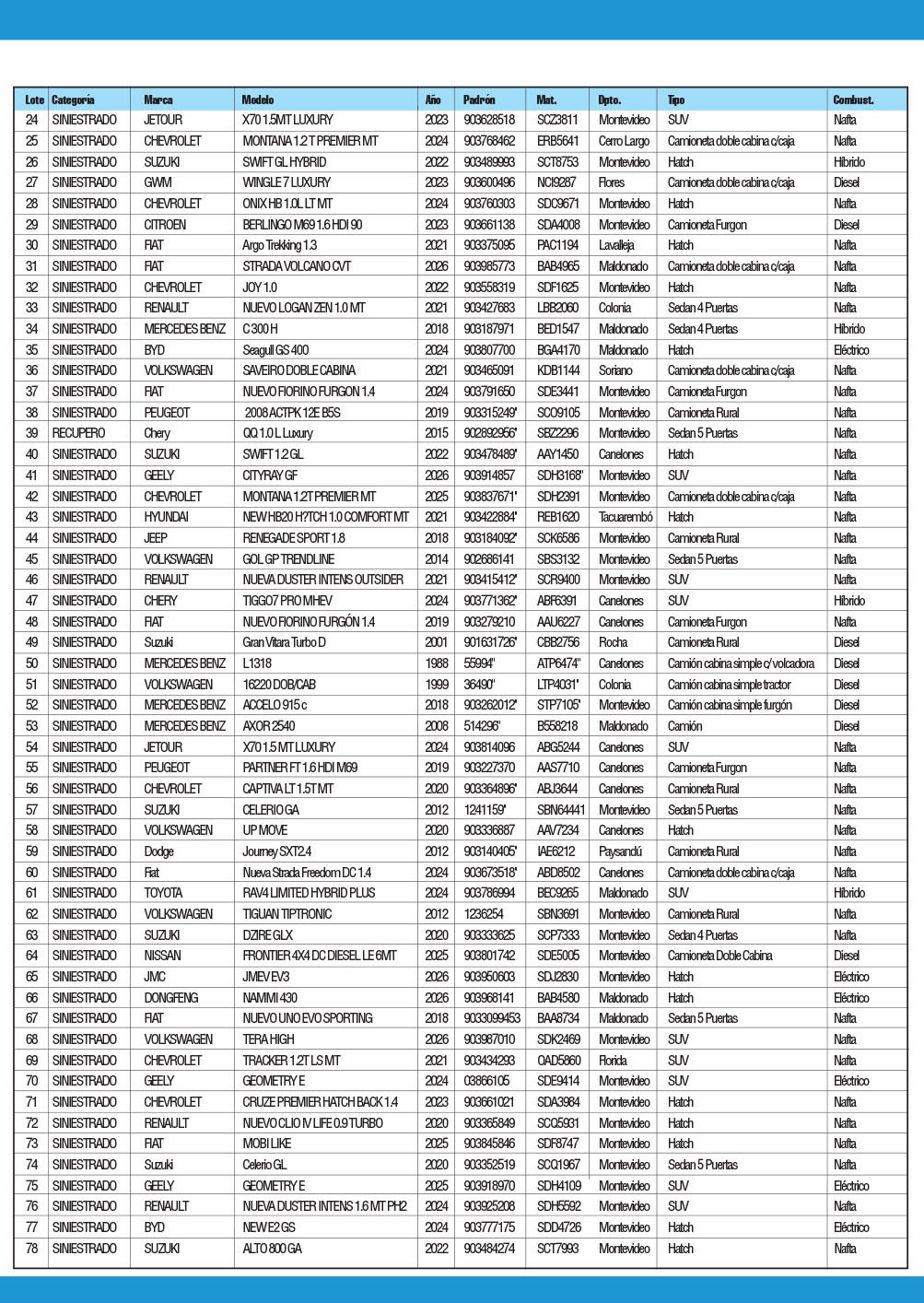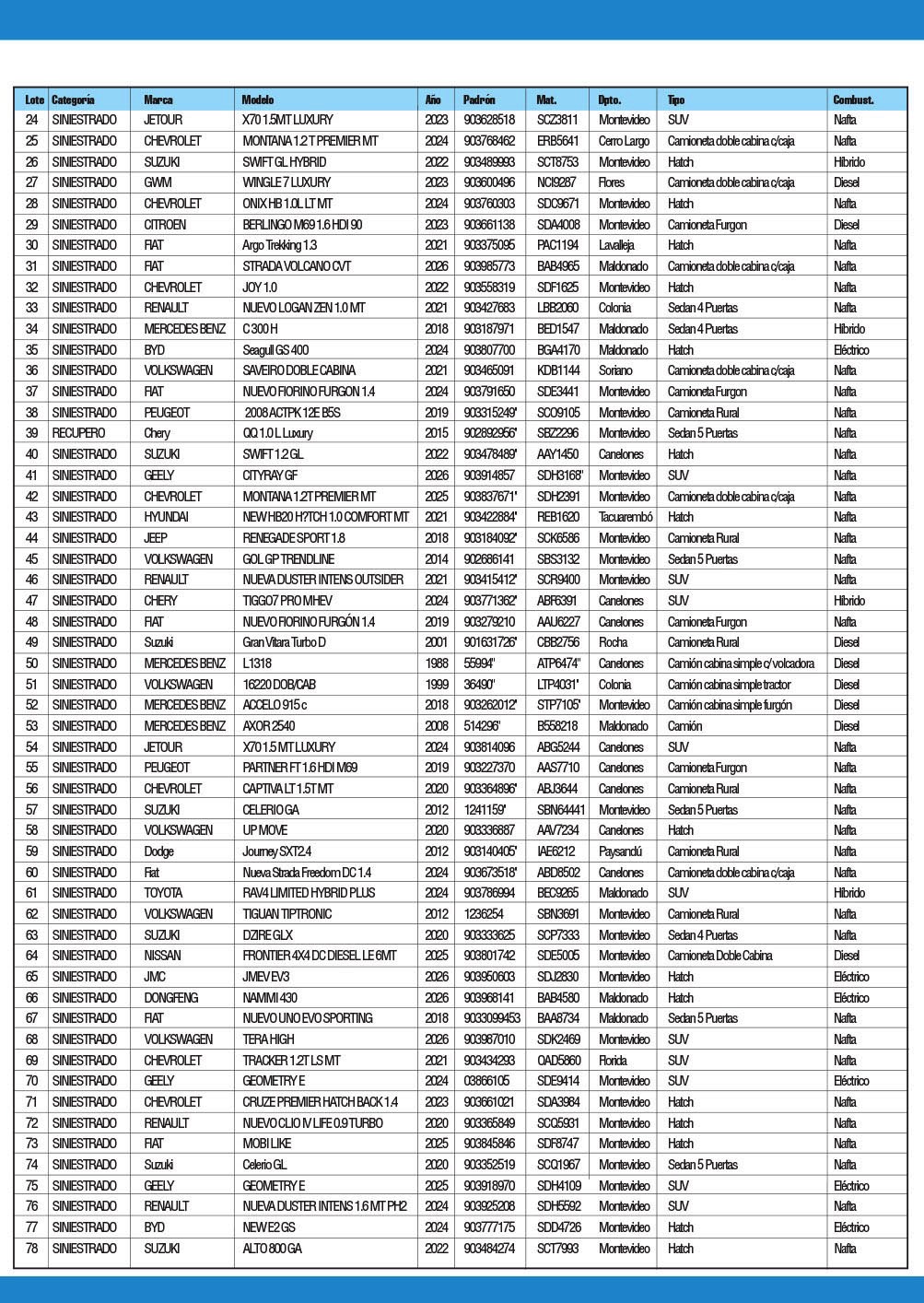 A LA VISTA Y SIN RECLAMO - CONCURRA CON ANTICIPACION PARA REVISAR EL ESTADO Y FUNCIONAMIENTO DE LOS VEHICULOS